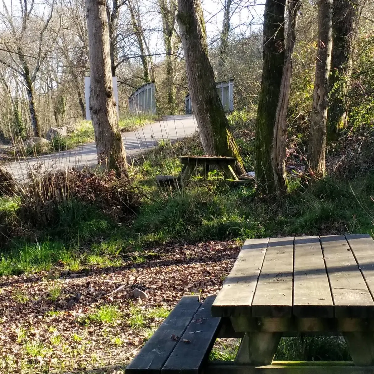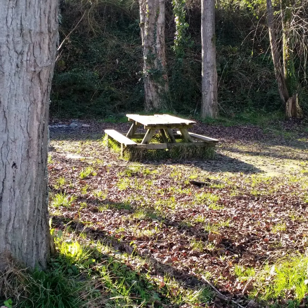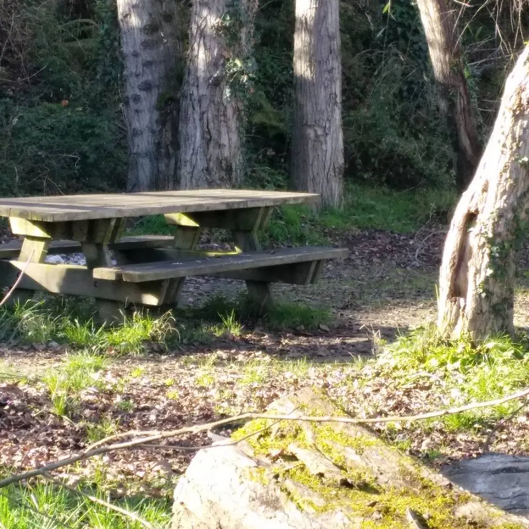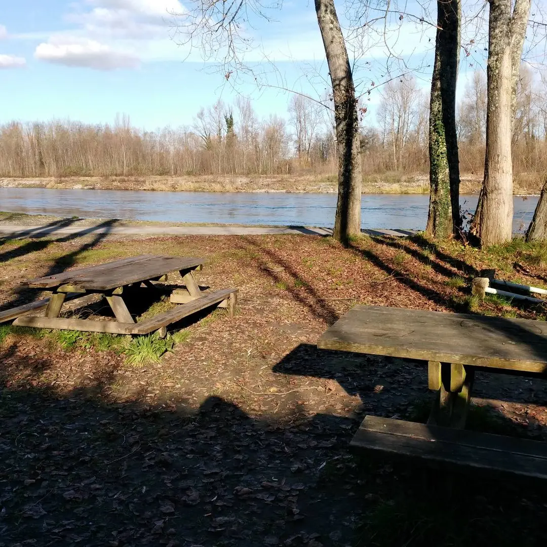 En descendant un petit chemin, au bord du gave, sont installées les tables de pique nique avec une jolie vue sur l'eau et la saligue. Vous êtes également sur le parcours de la voie verte et un peu plus loin, en la longeant vous pourrez faire le tour des deux lacs de Laroin, près du centre de pêche IKTUS.