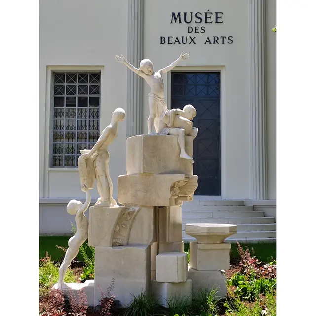 Sa composition repose sur une partie centrale ouverte sur La Fontaine aux enfants de l'artiste Ernest Gabard, restaurée et mise en eau. Cette dernière, conçue dans un style Art déco, entre évidemment en résonance avec le musée érigé dans les années 30.