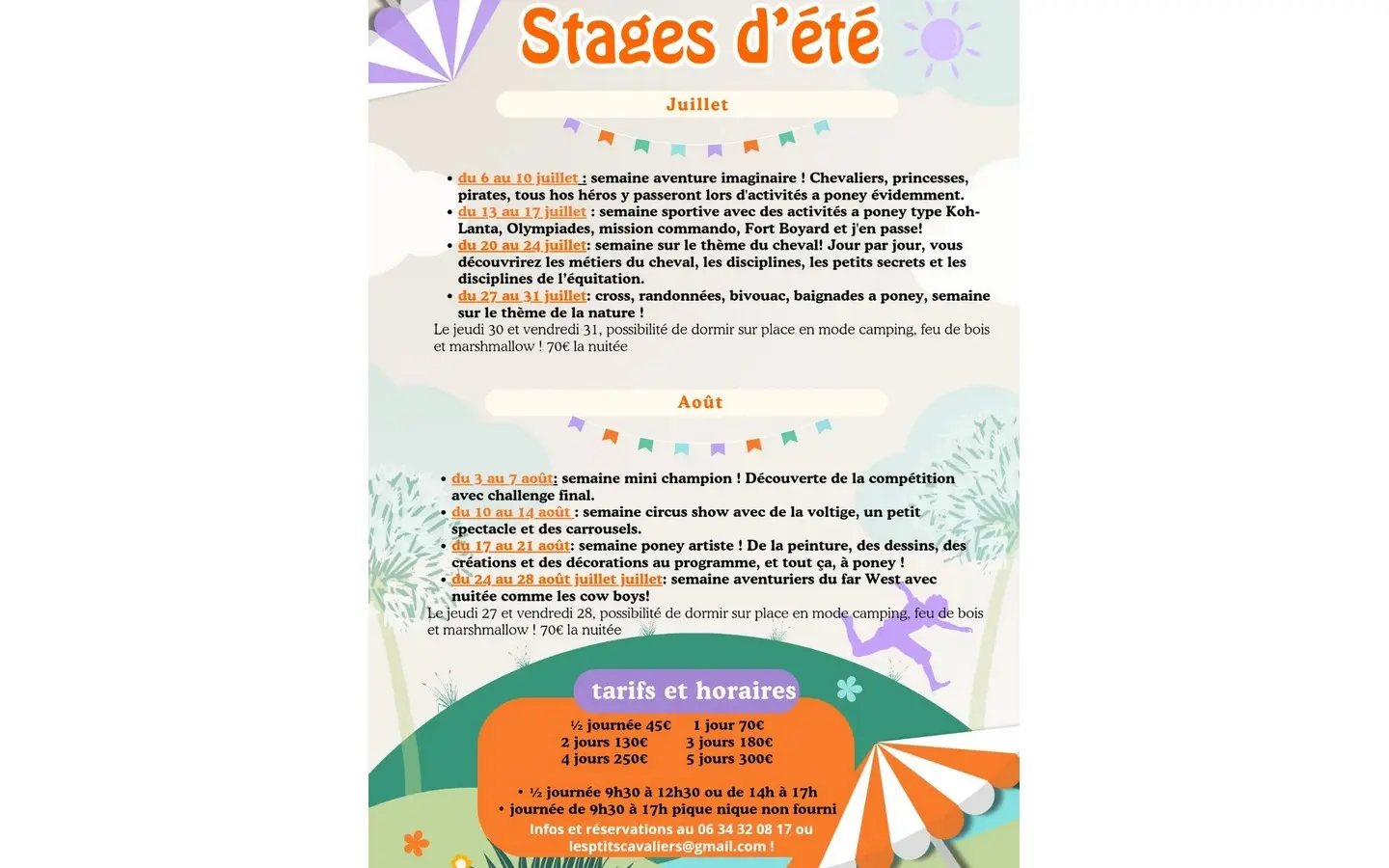 des semaines à thèmes avec des activités variées et toujours à poney. Les inscriptions sont possibles dès maintenant sur les jours de votre choix ! Renseignements au 0634320817 A très vite !